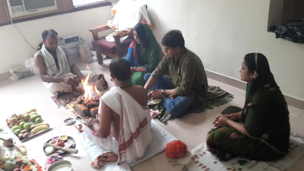The Havan nullifies the bad effects. It removes the harmful influence of the planets. The aromatic and medicinal herbs and camphor used purify the house and signify auspicious new beginnings with good energies. All family members sit around the Havan Kund and join in it while the priest chants the mantras.
